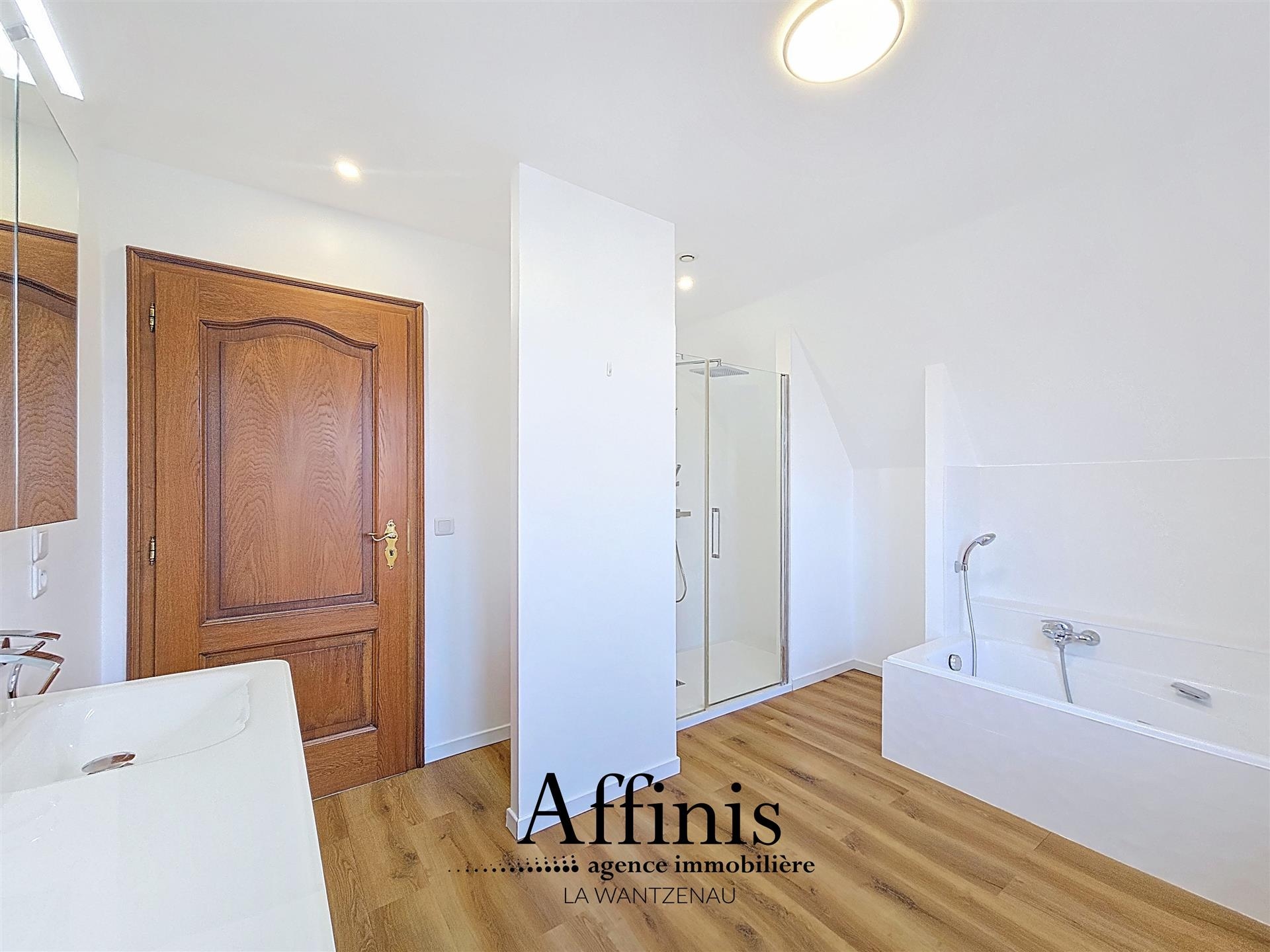 À l’étage, vous trouverez trois grandes chambres ( 24m²,19m² et 10m²) , une grande salle de bain rénovée de 12 m² et un WC séparé.